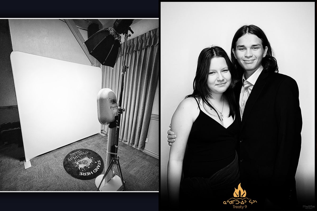 Signature black & white ‘Glam Booth’ for high-fashion portraits.