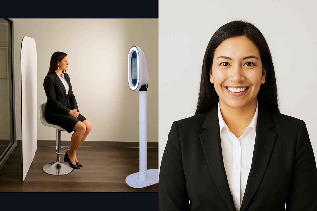 Drop-off setup for staff portraits. Ideal for offices, trade shows & teams.